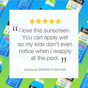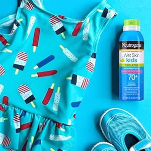 Keeping kids protected against sun damage at the beach or the pool is easy with Neutrogena Wet Skin Kids Sunscreen Spray with Broad Spectrum SPF 70+. Made for active kids, this convenient water-resistant sunscreen spray-on formula is specially designed to work with wet skin. It instantly cuts through water, creating a Broad Spectrum protection with every application. Formulated with Helioplex Technology, it offers superior broad spectrum protection from aging UVA rays and burning UVB rays This dermatologist-tested children’s sunscreen is hypoallergenic, oil-free, and PABA-free.