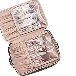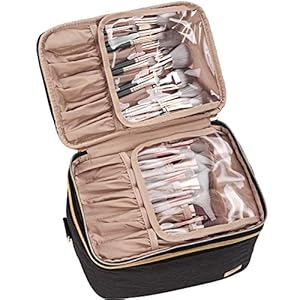 HOLDS SUBSTANTIAL MAKEUP BRUSHES-There are 20 slots on the top compartment to hold different sizes of brushes. The transparent cover protects your brushes from getting dirty, and at the same time protects the organization from powder dust