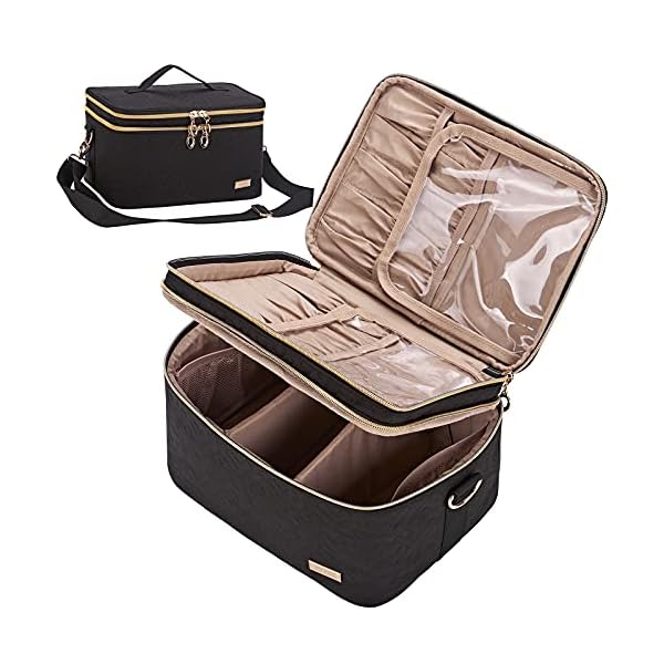 SPACIOUS INTERIOR WITH DETACHABLE DIVIDER-The main compartment is equipped with two detachable dividers, you can either use them to better organize your makeup or remove them for laying big items like hairdryer, etc