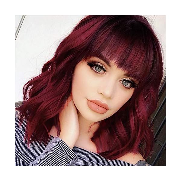 Fashion New Look:This wine red wig with bangs will make you feel like a whole new person when wearing it! It’s easy to put on for time-saving new style.