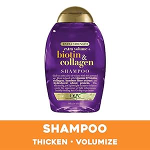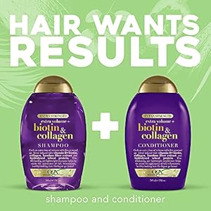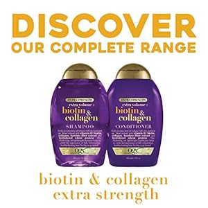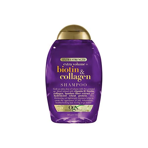 EXTRA STRENGTH FOR EXTRA VOLUME OGX Extra Strength Biotin & Collagen Shampoo is a volume-creating powerhouse with an extra helping of vitamins and proteins to pump up fine strands.