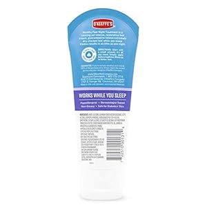 O’Keeffe’s for Healthy Feet Foot Cream is a concentrated foot cream that heals, relieves and repairs extremely dry, cracked feet. It is safe for people with diabetes. When used daily, O’Keeffe’s for Healthy Feet is clinically proven to: – Instantly boost moisture levels – Help prevent further moisture loss – Create a protective barrier on the skin’s surface – Make a difference you will feel within days Foot Representative Photos: Before and after foot images from two week usage period. Cream was applied twice daily. O’Keeffe’s for Healthy Feet Night Treatment is a calming yet intense, restorative foot cream that is to relieve extremely dry, cracked feet while you sleep. Visible results in as little as one night.