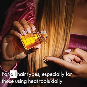 A highly-concentrated, weightless reparative styling oil. Dramatically increase shine, softness, and color vibrancy. Minimizes fly-aways and frizz. Provides heat protection of up to 450°.