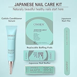 【HEALTHY, NATURAL NAILS】 – Restore nail health, transform your hands, and turn every at-home manicure into a spa-like experience with the complete nail care kit from Onsen! File and shape your nails with Onsen’s professional nail filer, smooth the surface of each nail with with nail buffer, and then promote healthy, even growth with the nourishing cuticle cream.