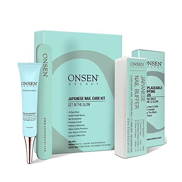 【OUR SACRED SECRET INGREDIENT】 – Where harsh chemicals and polishes fail your nails, nature provides. What’s the Onsen secret? The healing water of a sacred hot spring in Japan. After nail file and buffer block boost circulations of the nail beds, invigorating nutrients in your cuticle cream penetrate deeply to promote stronger, faster nail growth.