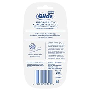 Oral-B Glide Pro-Heath Comfort Plus Floss is extra soft and gentle on gums, yet tough on plaque. Experience the Glide difference with this unique floss that’s smooth, strong, and shred resistant. Satisfaction Guaranteed, or your money back. For guarantee, call 1-877-769-8791 within 60 days of purchase with UPC and receipt.