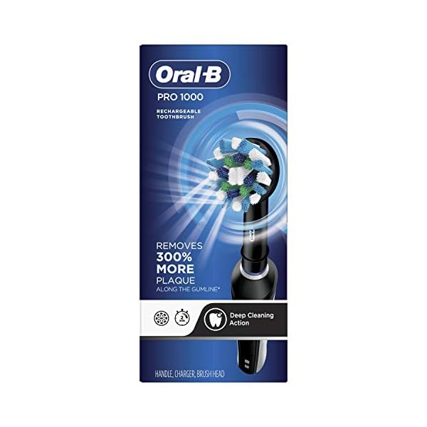 The Oral-B PRO 1000 rechargeable electric toothbrush provides a clinically proven superior clean vs. a regular manual toothbrush. The professionally inspired design of the CrossAction brush head (Refill Color May Vary) surrounds each tooth with bristles angled at 16 degrees, and 3D cleaning action oscillates, rotates, and pulsates to break up and remove up to 300% more plaque along the gumline vs. a regular manual toothbrush. The pressure sensor stops the pulsation movement if you brush too hard and there is 1 mode, plus an in-handle timer to help you brush for a dentist-recommended 2 minutes. Best of all, it’s brought to you by Oral-B – the #1 brand used by dentists worldwide*. Compatible with the following replacement toothbrush heads: CrossAction, 3D White, Sensitive Clean, Precision Clean, FlossAction, TriZone, Deep Sweep, ProWhite, Ortho, PowerTip, and Dual Clean. *Based on surveys of a representative worldwide sample of dentists carried out for P&G regularly. If the charge indicator light is not flashing immediately, continue charging. It will appear in 10–15 minutes ; Rechargeable with 1 mode: Daily Clean.