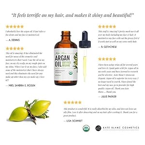 USDA CERTIFIED ORGANIC MOROCCAN ARGAN OIL – Kate Blanc’s Virgin Cold Pressed Argan Oil of Morocco is certified by USDA and is guaranteed to be authentic, pure, natural, unrefined, and hexane free. This is the LIGHT version where the scent is lighter and less golden. For a nuttier scent, select the NUTTY version. 100% Guaranteed Authentic or FULL REFUND.
