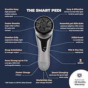 FAST 2 HR CHARGE, UPGRADED 2200 RPM and 2 SPEEDS – Love your instantly smooth feet – Next-gen 1300mAh rechargeable battery to buff away hard, dead skin; Reveal baby-soft skin in minutes with no prep time, harsh gel, pumice stone or pedicure rasp tools