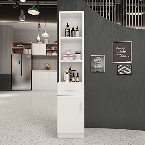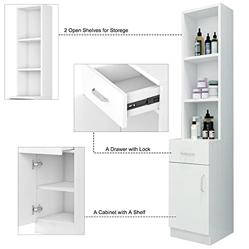 ✔️[REASONABLE STORAGE PLANNING] Features 2 open shelves, a drawer and a big cabinet with a shelf in the bottom. The spacious storage space is enough for keeping salon tools. ✔️The design of the handle can facilitate the opening and closing of the drawer.