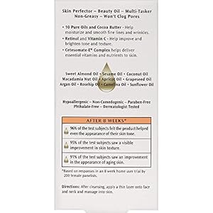 This lightweight, non-greasy formula absorbs quickly and delivers all of the essential vitamins and nutrients directly into the epidermal layer of the skinch With a powerful blend of 10 pure precious oils, Retinol, Vitamin C and our exclusive Cetesomate-E Complex skin restorative oils along with natural Cocoa Butter, Retinol and Vitamin C deliver multi-purpose, anti-aging skin benefits, our Skin Therapy Oil for Face will leave your skin looking younger with a more glowing and firm appearance. Use in combination with Palmer’s Skin Therapy Cleansing Oil for Face, which gently cleans skin with the power of Pure Cleansing Oils, Cocoa Butter and Vitamin C. Dissolves dirt, oil and make-up and rinses perfectly clean without stripping skinch Purifies complexion for clear, soft and brighter looking skinch.