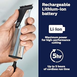 Enjoy best-in-class styling with our most advanced trimmer, the Philips Norelco Multigroom 7000. An all-in-one trimmer for ultimate precision with DualCut blades that delivers maximum precision for head-to-toe styling. The steel frame and rubber grips deliver superior control and the Lithium-ion battery yields 5 hours of runtime.