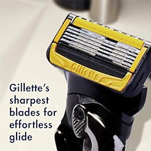 The Gillette ProGlide Shield men’s razor with lubrication before and after the blades, shields skin from irritation while you shave giving you uncompromising closeness and comfort. These blade refills for men feature 5 antifriction blades for a shave you can barely feel. The blades are spaced closely together for incredible comfort with a precision trimmer on the back for hard-to-reach places and for styling your facial hair just the way you want it. The enhanced lubrastrip (vs. Fusion5) has more lubricants for comfort and glide. With 2x lubrication (vs ProGlide) for incredible comfort. The lubrication before & after the blades shields from irritation while you shave. Soft microfins gently stretch and smooth your skin while a microcomb helps guide your hair for a close shave from our thinnest blades. The ProGlide Shield razor for men features our sharpest blades (first 4 blades) which help get virtually every hair effortlessly. One razor blade refill lasts up to one month of shaves. All ProGlide Shield blade refills can fit all Gillette 5 blade razor handles (excluding GilletteLabs).