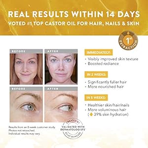 Voted #1 castor oil on the market: Common castor oils are refined, removing critical nutrients such as Omega-6. Ours is unrefined & dermatologist approved to show results: After 10 days, 96% of users saw visible improvements in hair length, volume and brilliance. 92% of users said their lashes and brows looked fuller and longer. 91% said their skin looked more radiant and nourished.