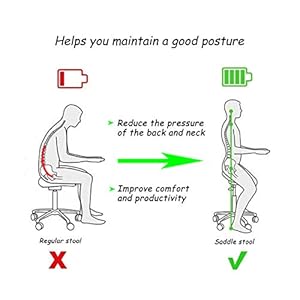 Ergonomic:This saddle stool chair design for extra comfort on your back and spine,this design reduces painful pressure on your back.