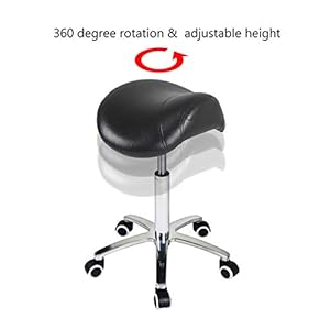 Rotation :The cushions and wheels are free to rotate, you can use this saddle swivel stool to roll freely in the room.Suitable for kitchen, living room,office, clinic, salon,etc.