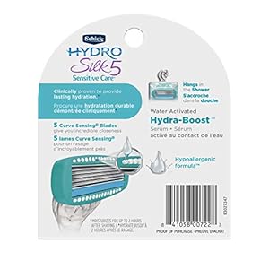 Hydro silk sensitive refill 4 count. Is designed to handle even the most sensitive areas with the technology you expe count from a razor while being dermatologist tested for sensitive skin. Hydro silk sensitive refill 4 count. Contains skin guards to reduce redness and irritation with 5 ultra-glide blades. Hydro silk sensitive refill 4 count. Finishes with high gloss colored chrome and a soft touch rubber for gripping ease with an easy cartridge loading system.