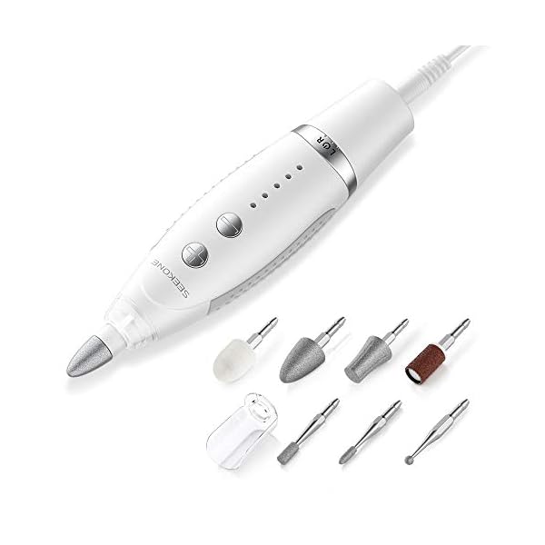 ★【MULTIPLE ADJUSTABLE SPEEDS】: Designed with 5 adjustable speed settings of low and high to meet your different needs. Just press the plus (+) and minus (-) speed control buttons to increase or decrease RPMs respectively, getting the spa and salon quality experience at your home. Speed 1: 2800RPM ; Speed 2: 3400RPM ; Speed 3: 4200RPM ; Speed 4: 4800RPM ; Speed 5: 5300RPM.