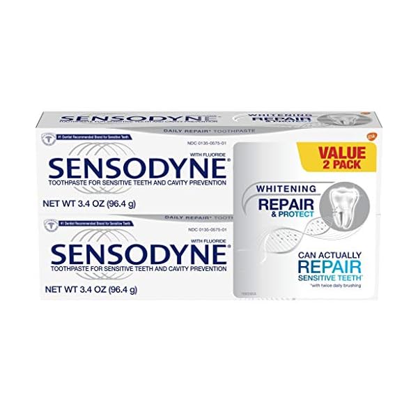 Two 3.4 oz tubes of Sensodyne Repair & Protect Teeth Whitening Sensitive Toothpaste, Cavity Prevention and Sensitive Teeth Treatment