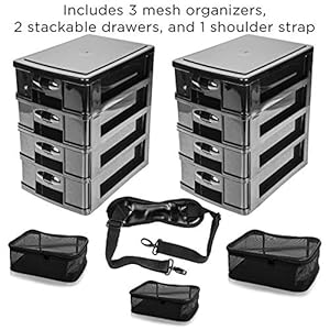 Includes dust and liquid proof trays, multiple compartments, and removable drawers.