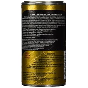 A shaving powder (depilatory) formulated for black men to help stop razor bumps. Provides a clean, razorless shave that lasts up to 4 days. Fresh fragrance. • Razorless shave helps stop razor bumps • Lasts up to 4 days • Fresh fragrance • We believe in beauty without compromise Always read all product labeling and instructions completely prior to use. IMPORTANT: Contains Thioglycolate. If skin is inflamed or has abrasions, sores or pustules, consult dermatologist before use. Conduct sensitivity test before use. Wait 36 hours after using razor, shaving product or depilatory. Do not use with any after shave containing alcohol. Only for removal of facial hair. This is a safety summary. Read all product labeling and instructions completely.