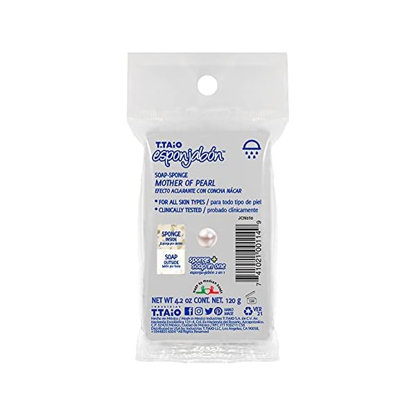 Jabón con esponja integrada efecto aclarante Concha Nácar Aclara, empareja y suaviza la piel. VENTAJAS: Para todo tipo de piel Clínicamente comprobado Propiedades exfoliantes Único en el mercadol Para uso diario 2 en 1 No probado en animales CARACTERÍSTICAS: Hecho con Concha Nácar El jabón se va disolviendo al contacto con el agua y permite el uso de la esponja Jabón hecho a base de glicerina por fuera Esponja con textura suave por dentro INSTRUCCIONES: Humedes: Humedes: Jabón con esponja Integral Use sobre su piel como lo haría con un jabón convencional Recomendamos dar masajes circulares sobre toda la piel Una vez que haya acabado enjuague y deje en un lugar seco En caso de irritación descontinúe su uso Evitar el contacto con los ojos, si esto sucede enjuagar con agua fría en abundancia