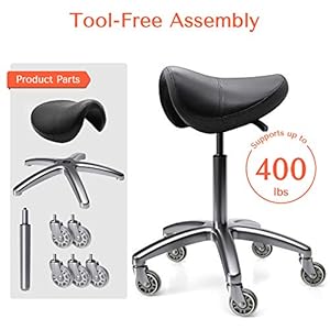 ERGONOMIC SADDLE STOOL WITH WHEELS: The TASALON ergonomically-designed saddle seat stool is here to keep you comfortable even after hours of work thanks to its thick, soft padding and comfy “saddle” style design.