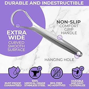 Easy to Use & Clean – Why waste money on a tongue scraper plastic tool that breaks? Get your tongue scraper stainless steel today and take that confidence a step further knowing your wide-head tounge scraper cleaner will last a lifetime. Don’t get stuck with tongue scraper plastic that is weak and too small. What use is that? You deserve the best. That’s why your new tongue scraper stainless steel should be firm with a full head to cover your entire tongue.