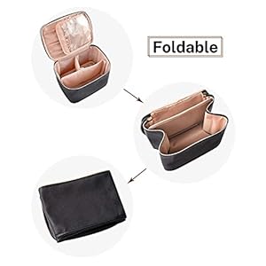 PU Leather makeup bag function – Portable and Lightweight design with handle, it’s waterproof and shockproof, You can bring your cosmetics to anywhere. The makeup bag not only collect your skin care and cosmetic but also collect your jewelry, electronic accessories, essential oil, toiletries, shaving kit etc.It will be a good mothers day gifts