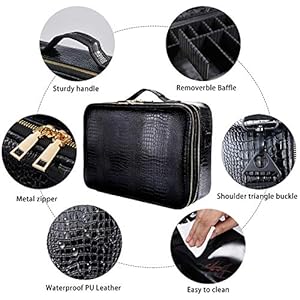 ♔Durable Material: This makeup travel bag is made of high quality Crocodile Pattern PU Leather is water-resistant, durable, shockproof and easy to wipe clean.